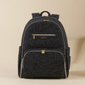- Top handle, breathable honeycomb+cushioned straps, D-ring features, stroller Velcro straps.