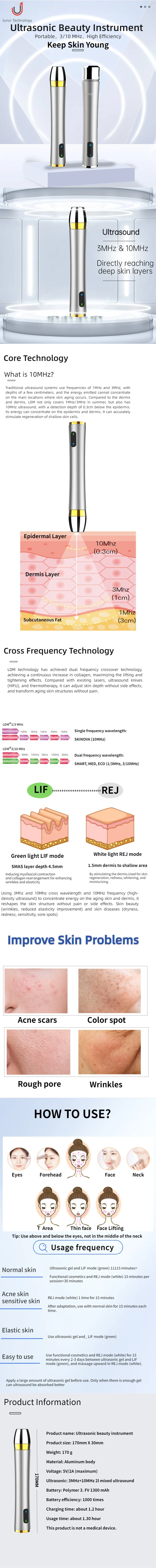 Traditional ultrasound systems use frequencies of 1MHz and 3MHz, with depths of a few centimeters, and the energy emitted cannot be concentrated on the main areas of skin aging - the dermis and dermis. In contrast, variable frequency ultrasound not only covers 1MHz/3MHz in summer, but also has 10MHz and even over 10MHz ultrasound. Its penetration depth is 0.3cm below the epidermis of the summer cover, and its energy can concentrate on the epidermis and dermis, accurately stimulating the regeneration of shallow skin cells.