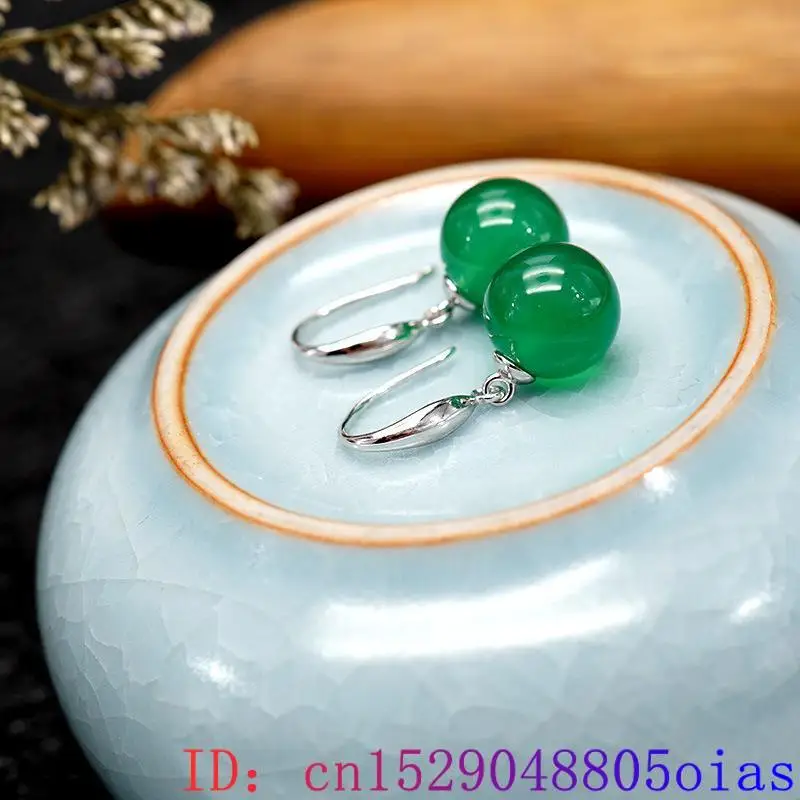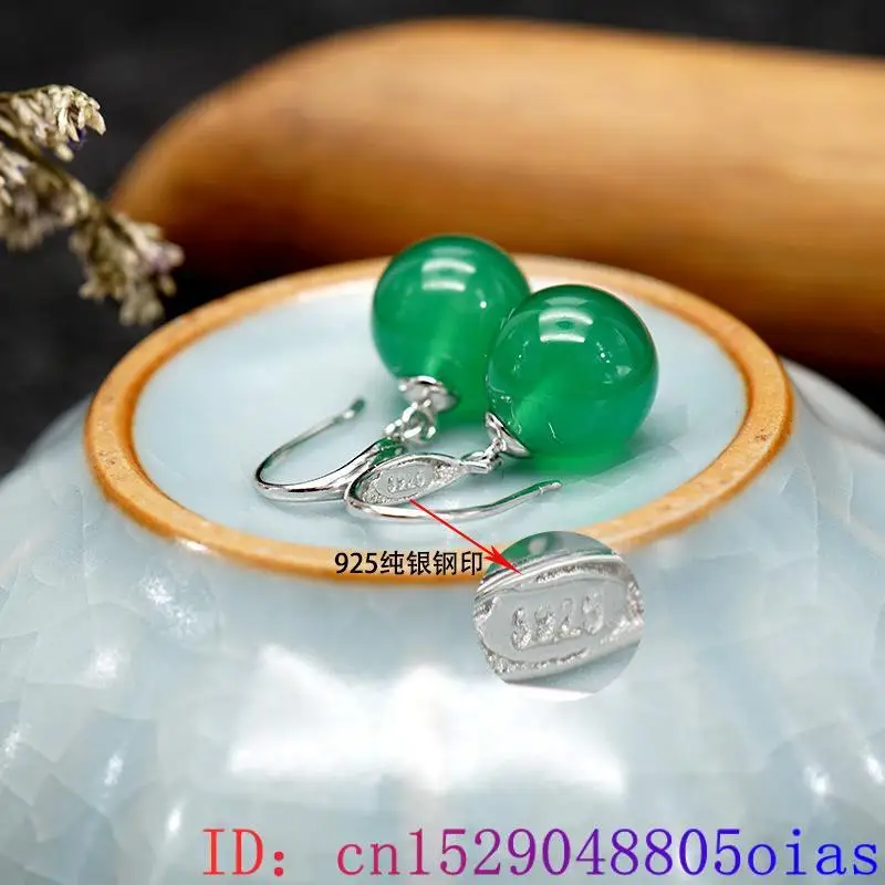 Green Real Jade Bead Earrings 925 Silver Gift Talismans Designer Carved Natural Jewelry Women Fashion Gemstone Gifts Stone