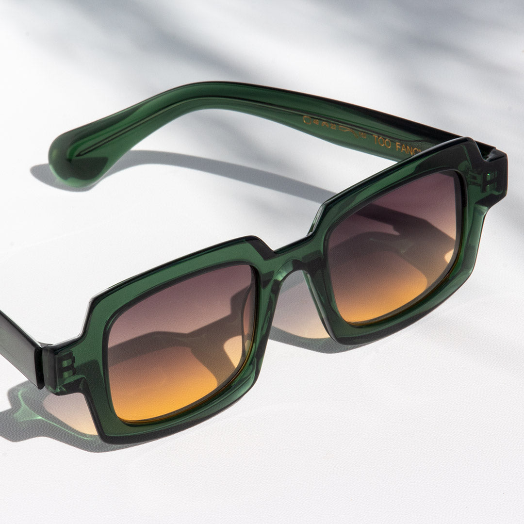 Ispirato alle elegantissime star di Hollywood degli anni ‘70, TOO FANCY è un occhiale oversize dalla montatura squadrata che offre un look inconfondibile. La struttura dell’acetato spessa da ampio risalto alla pienezza del colore smeraldo dell'acetato scelto.