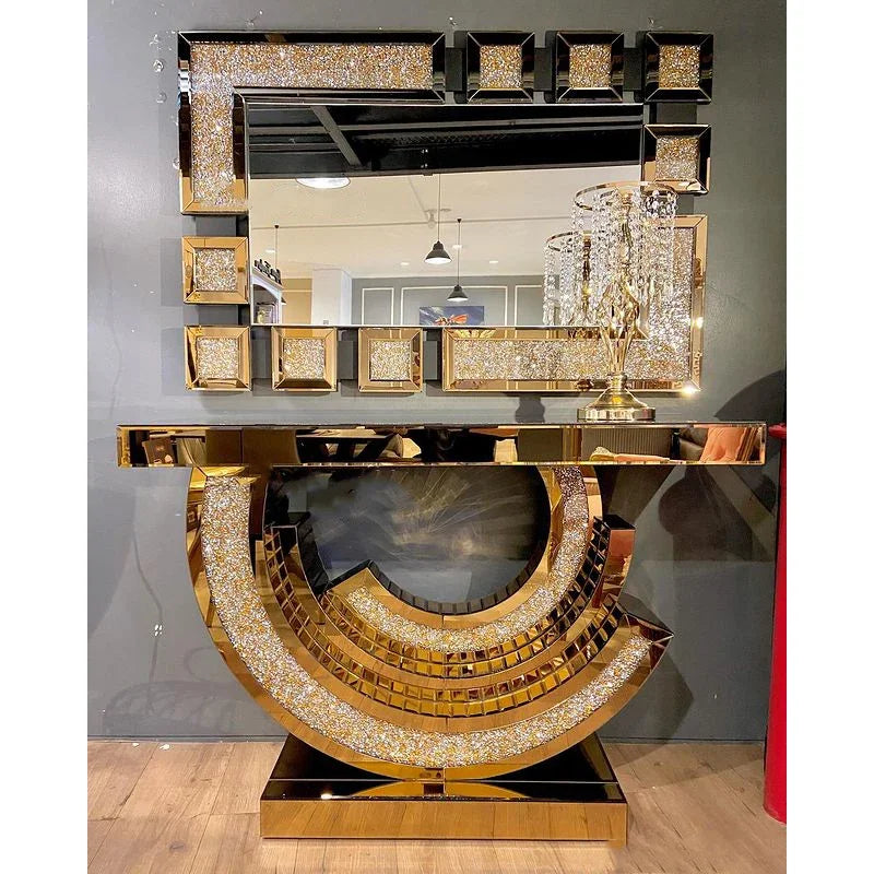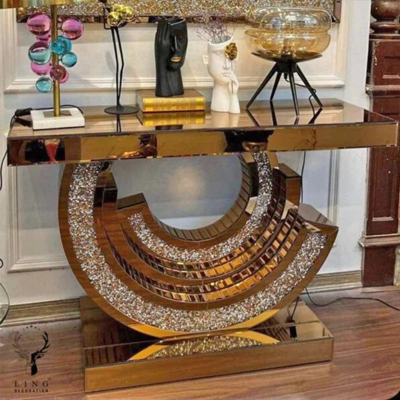 High Quality Deluxe Console Table with Mirror Entrance Console Table for Living Room Home Furniture Crystal Diamond