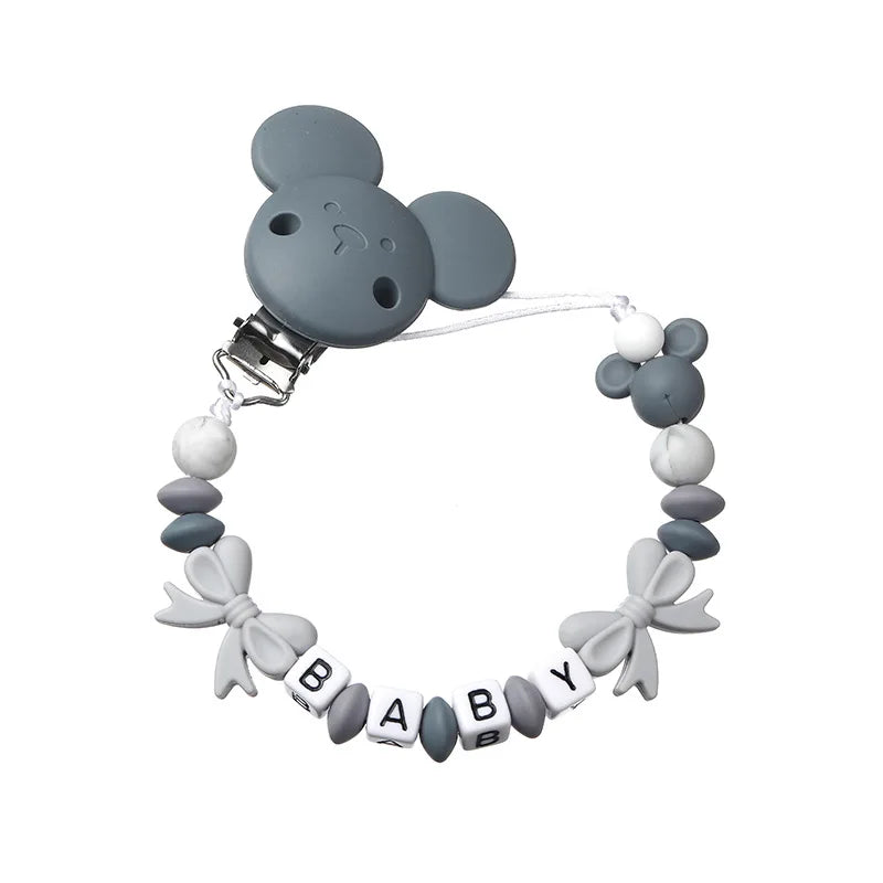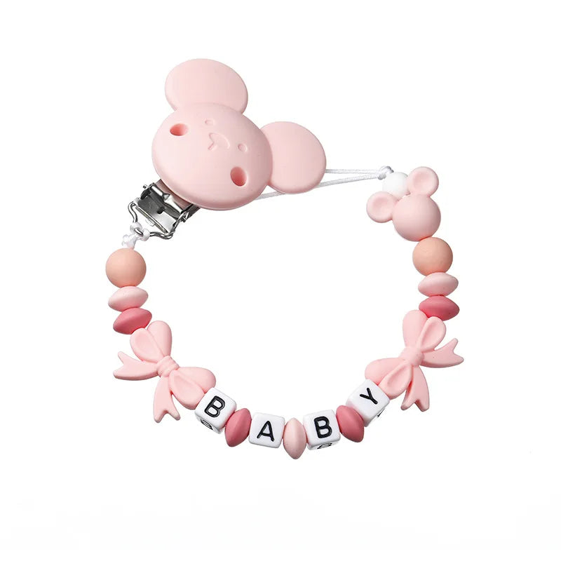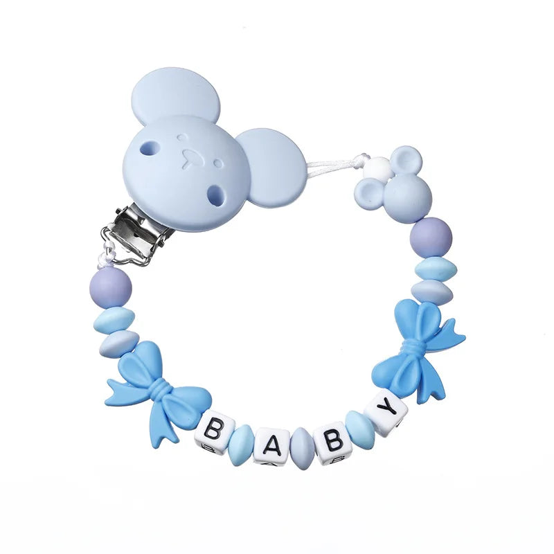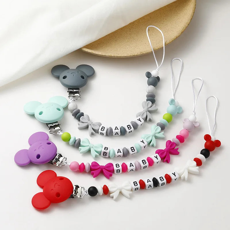 INS Baby Pacifier Clips Personalized Name Cartoon Silicone Bow Dummy Nipples Holder Clip Chain Newborn Teething Toys Accessories