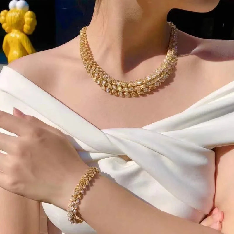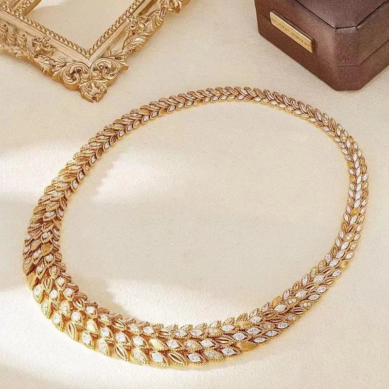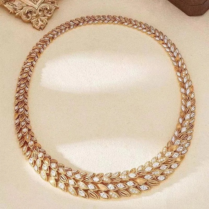 Jeweler Exclusive Wheat Ear Dew Drop Set Chain 19.181 Carat 18k Gold Choker Natural Yellow Diamond Choker Women