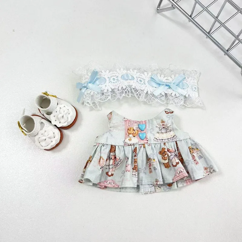 Labubu I II Idol Dolls Sitting Party Clothing Outfit 17cm Mini Plush Doll'S Clothes Lolita Dress Overalls Accessories