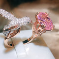 Lovely Pink Zircon And Hummingbird Open Ring Elegant Jewelry 925
