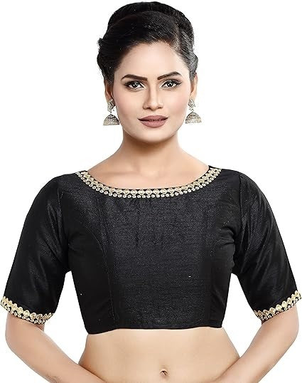 This is Madhu Fashion's New Banaras Brocade Readymade Saree Blouse. It is an Elbow Length Blouse with Gold Piping on the Sleeves. This is a Front Opening Blouse with Round Neck Type. This is a Ready to Wear Saree Blouse that can be worn with any Contrast Coloured Saree. Available in Multiple Colors & Sizes.