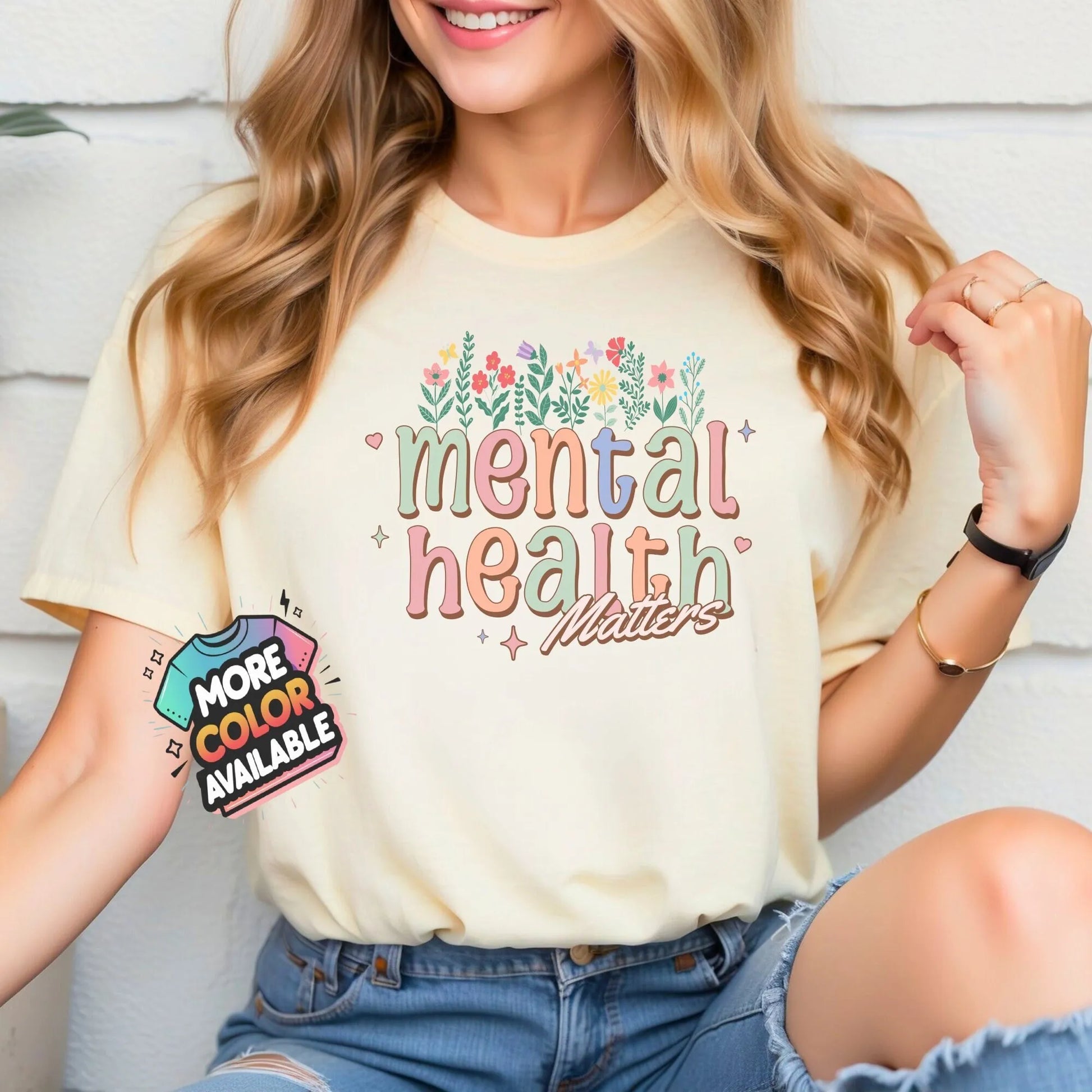 Mental Health Matters T Shirt Inspirational Quote Floral Design Self Care Wellness Positive Message Comfort Fit