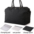 The perfect travel bag for this weekend! Boasts an extensive storage capability, perfect for families on the move. With a main compartment, interior zippered pocket, three foil pockets for sustenance, four pockets for organization, two detachable pouches (11 ½ x 9 inches), a Diaper Changing Pad, back pocket for phone/keys, and a luggage loop, it has all of the features one needs.