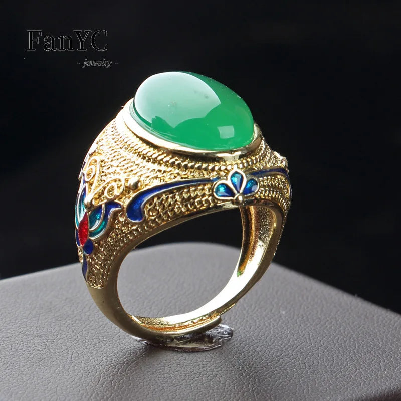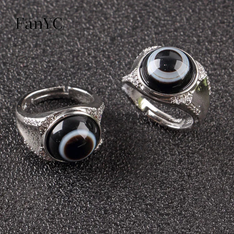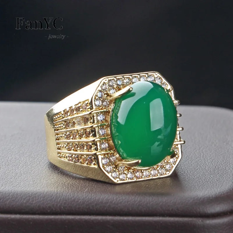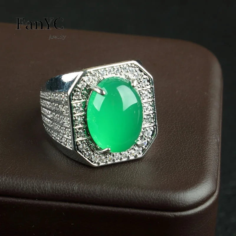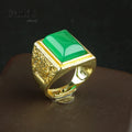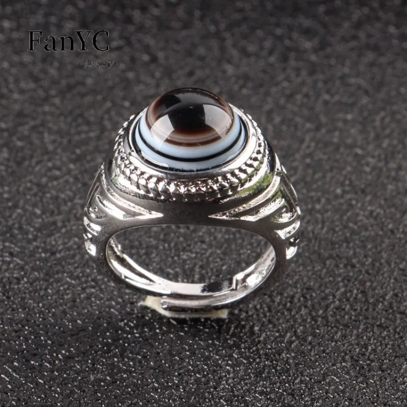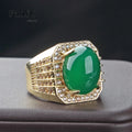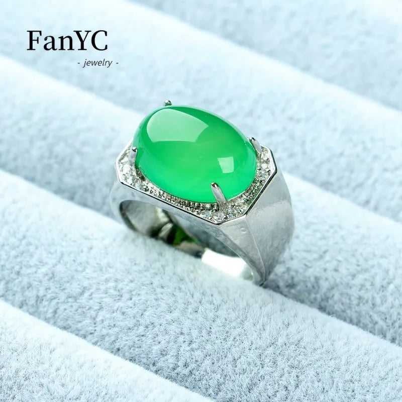 Natural 925 Silver Inlaid Green Agate Jade Ring Vintage Exquisite Men's Jewelry Adjustable Finger Ring Holiday Gift