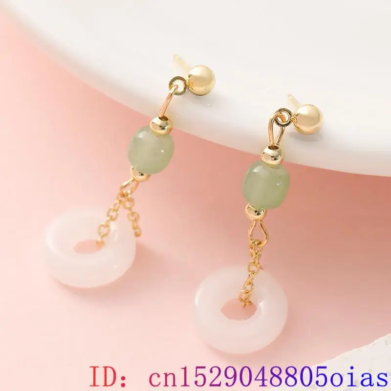 Natural Real Jade Ring Earrings Stone Amulets Vintage Jewelry Gift Gemstone Ear Studs Talismans Charm 925 Silver Accessories