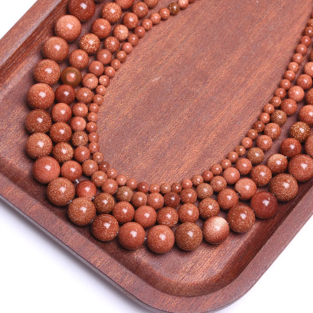 Natural Stone Golden Sand Stone Round Beads for DIY Bracelet Ornaments Material Accessories 4/6/8/10/12mm