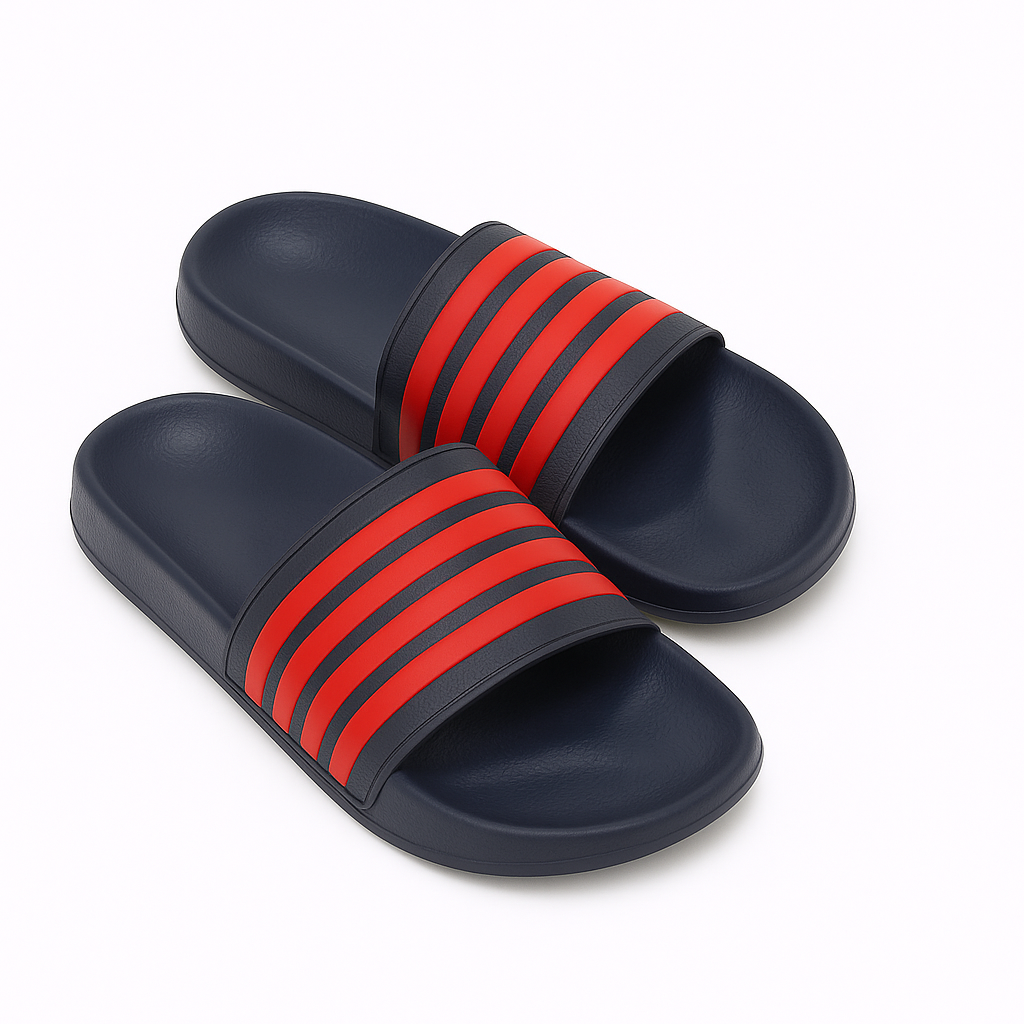 Navy Blue and Red Striped Slide Sandals (Size 8 UK)