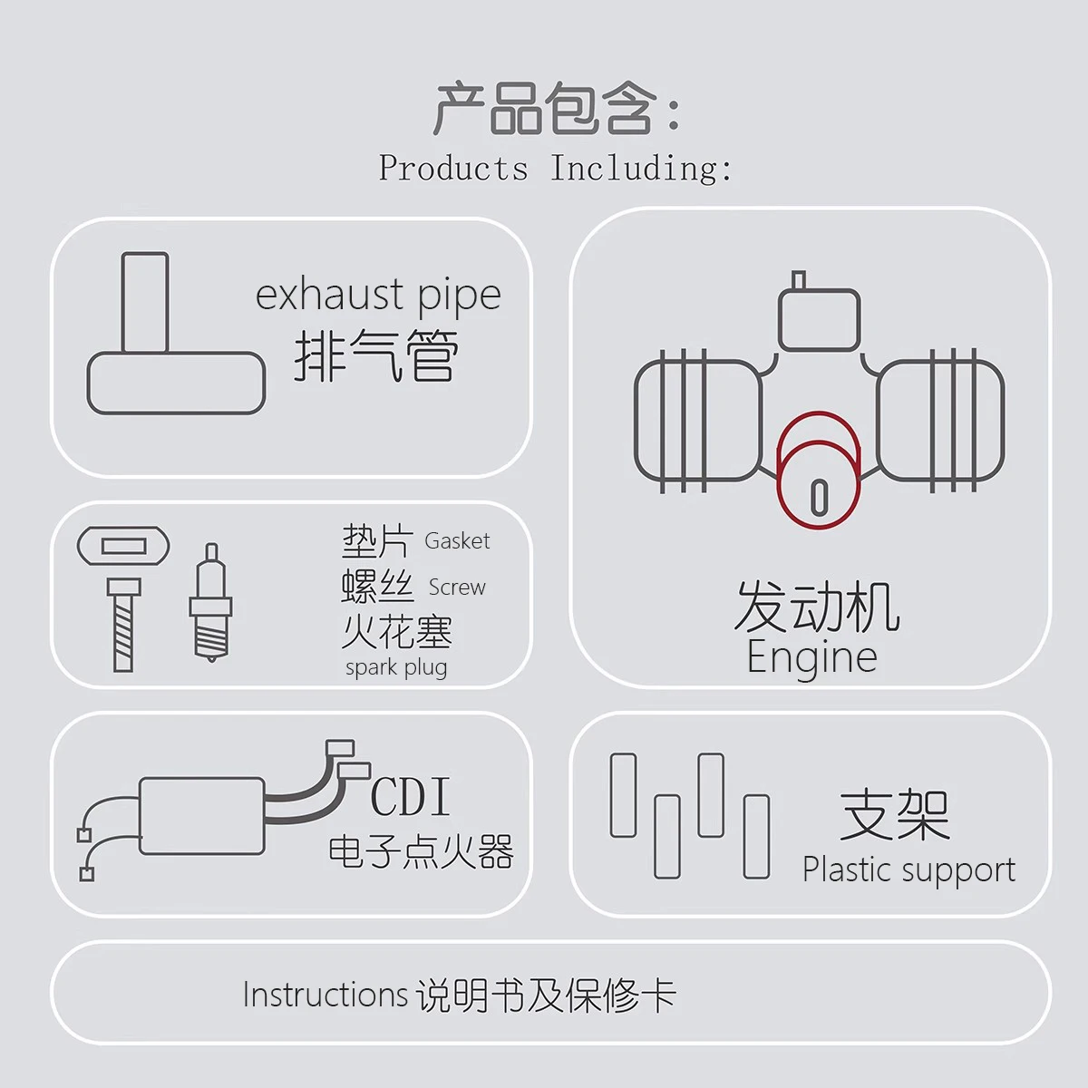 Note:only by taking good care of the engine can the engine have a good service life. The normal use of vvrcrcgf gasoline engineThe service life is more than 200 hours. At the same time, our engine recommends to use mote 800 fully synthetic two-stroke engine oil if in useIf you encounter any problems, you can contact us, and we will provide perfect after-sales service for all model friends.