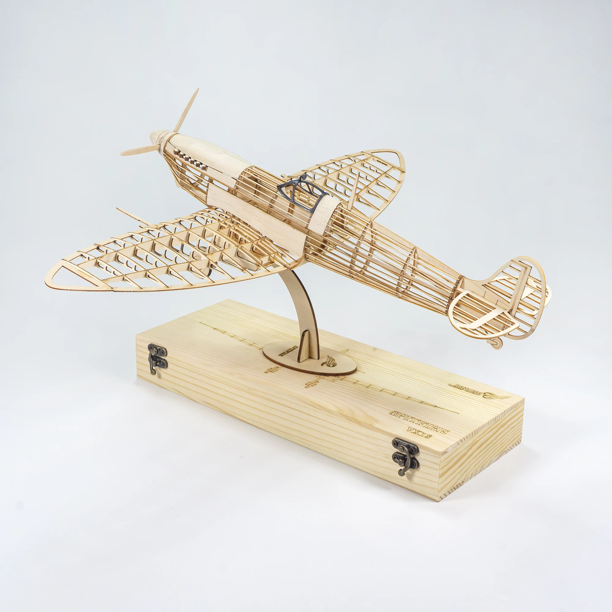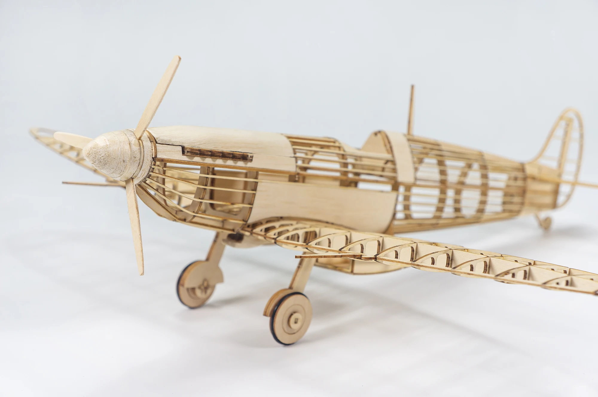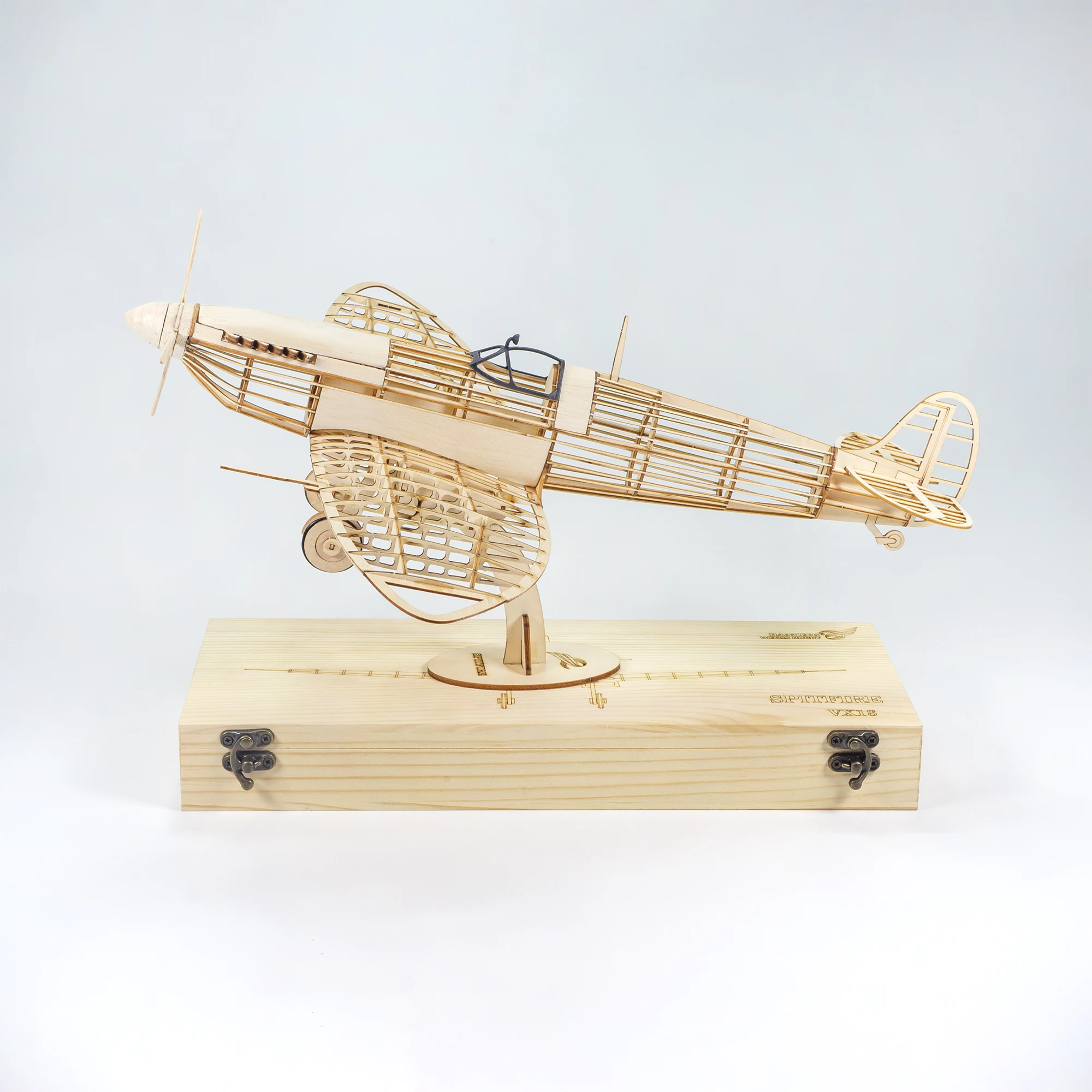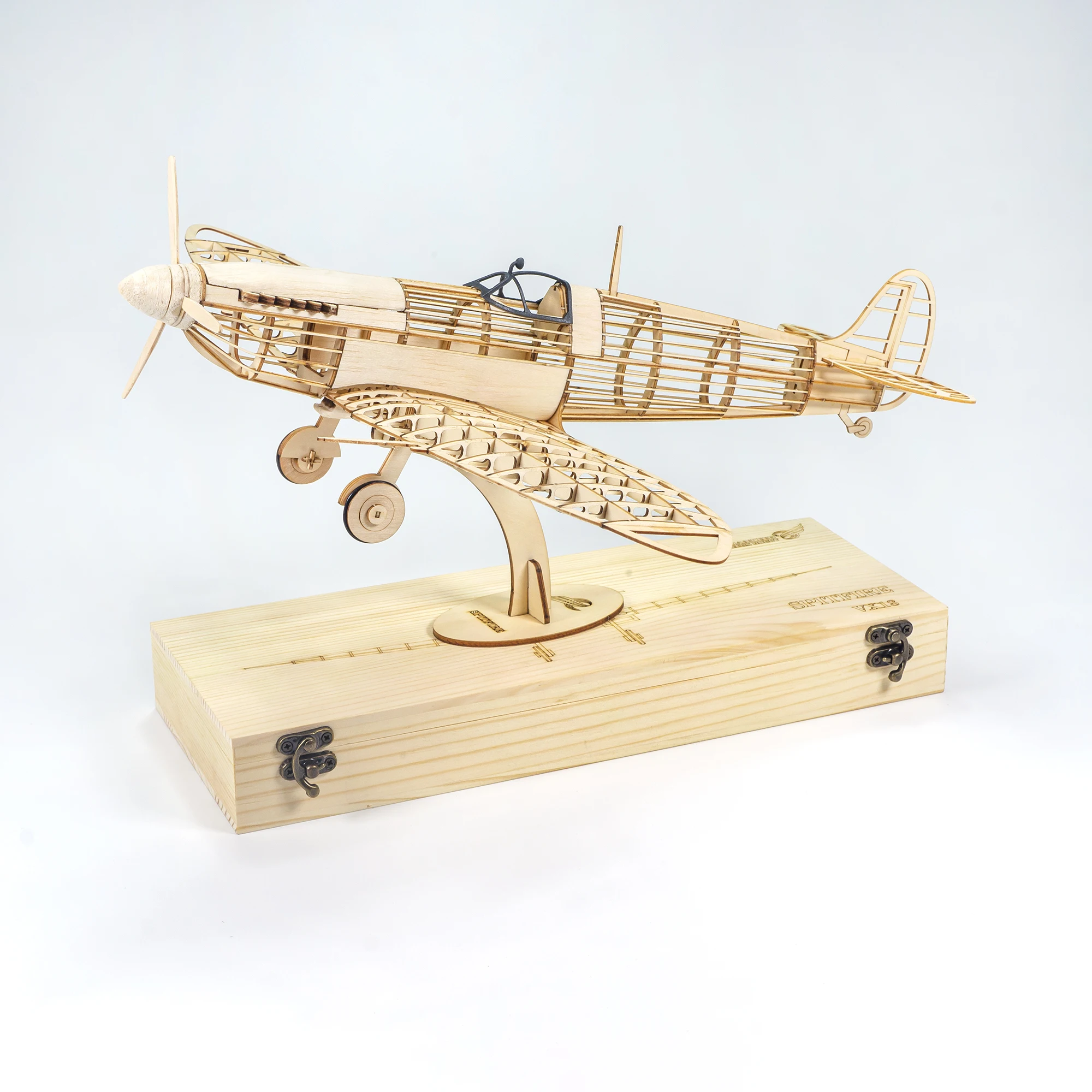 Real Hawk Spitfire Fighter Scale 1:25 Aircraft Wood Solid DIY Assembly Model Set Wood Toys Ornaments Children's Gifts