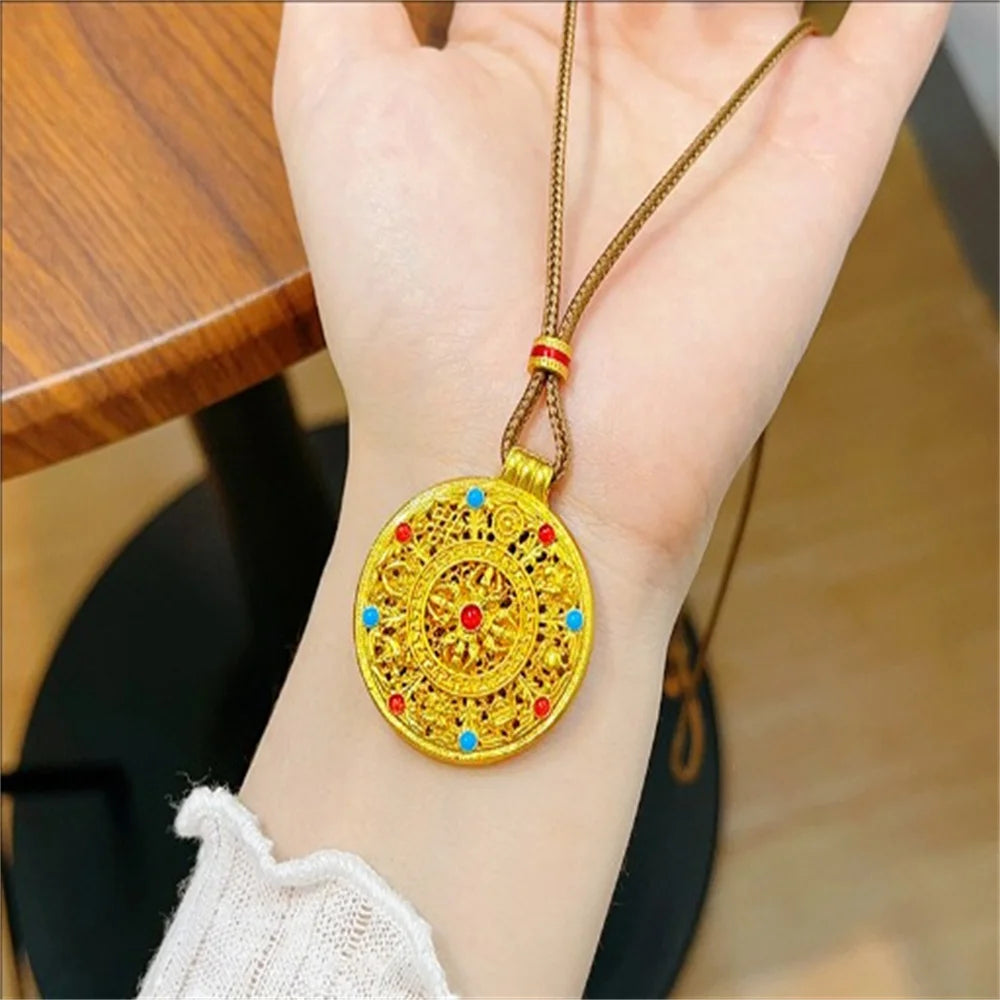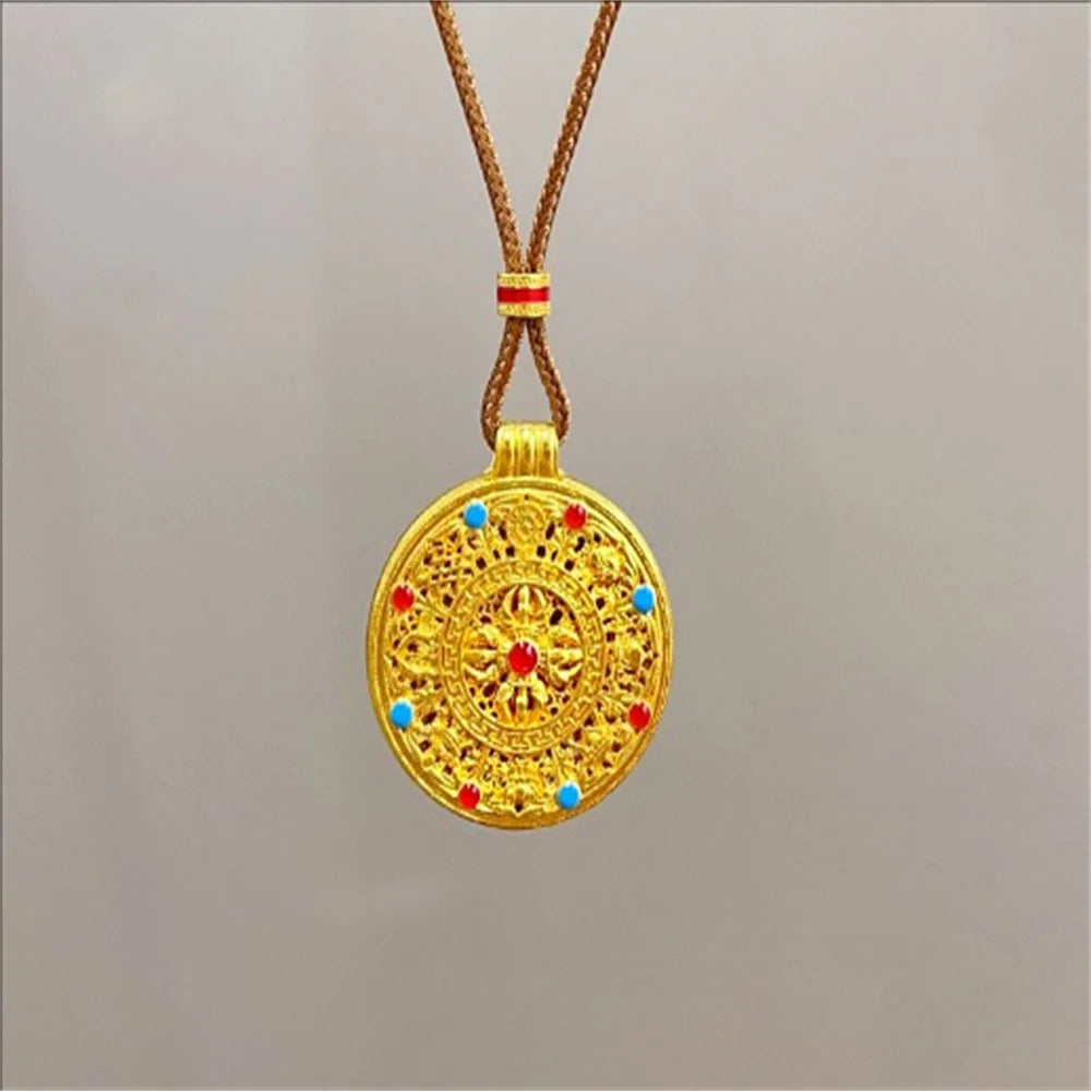 Sand gold hollowed out enamel colored diamond pestle, eight treasure compass pendant, lucky and auspicious necklace