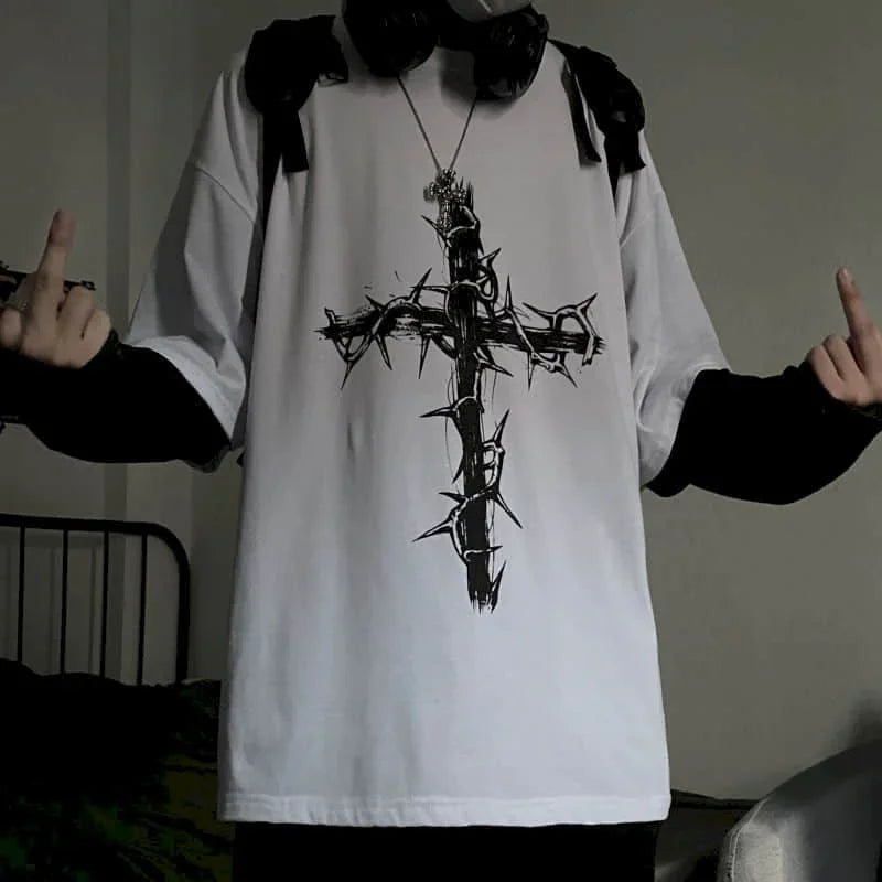 T-shirt for Men Summer Cross of Thorns Suitcase Men's T-shirts Long-sleeved Dark Hip-hop Men's oversize t-shirt Y2k T Shirt Tops