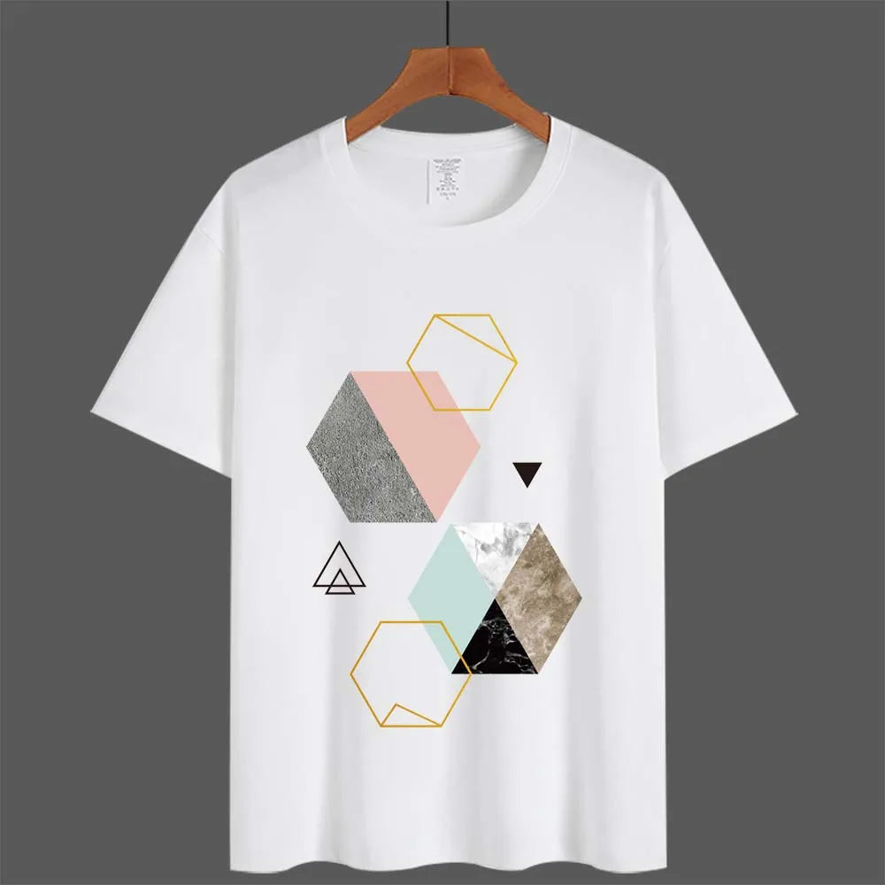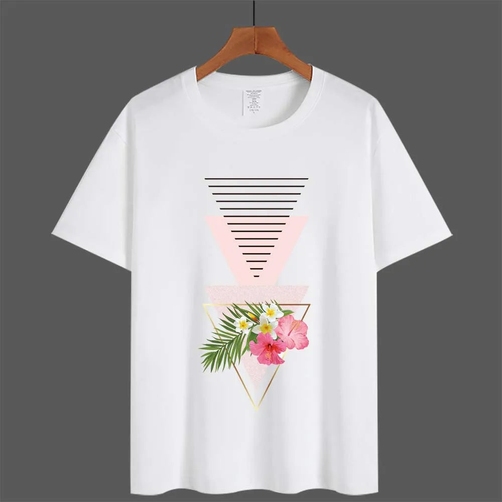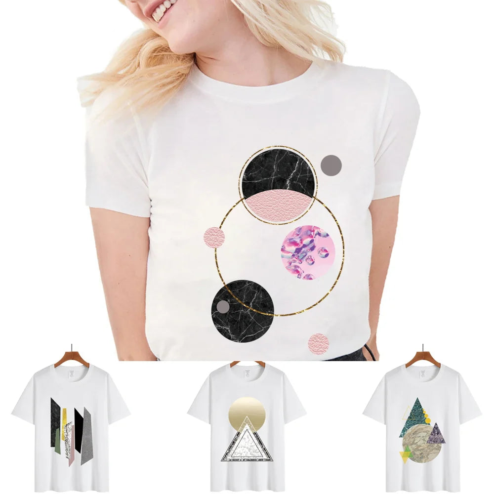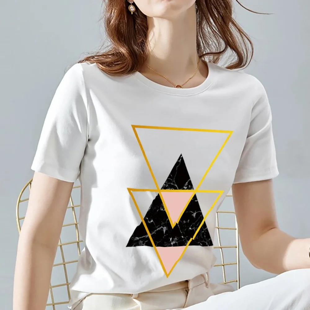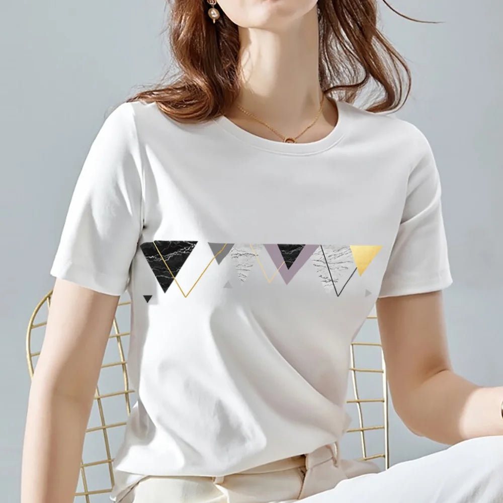 T-shirt Top Women New Round Neck Short Sleeve Tshirts Clothing Fashion All-match Streetwear Tees Breathable Shape Print Shirts