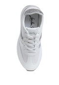 Add some flair to your style with these chunky lace-up sneakers. Crafted from a perfect mix of faux leather and mesh, they feature stunning glitter accents and an anti-skid lug sole for added comfort. These must-have kicks are ideal when paired with your favorite loungewear or boyfriend jeans for a chic, girl-next-door vibe.