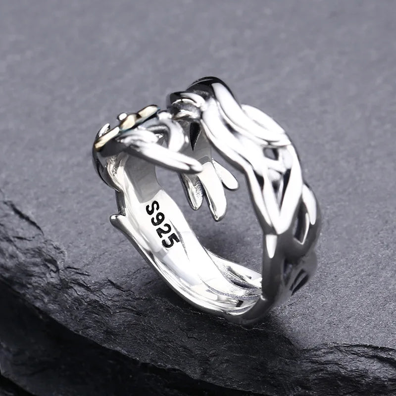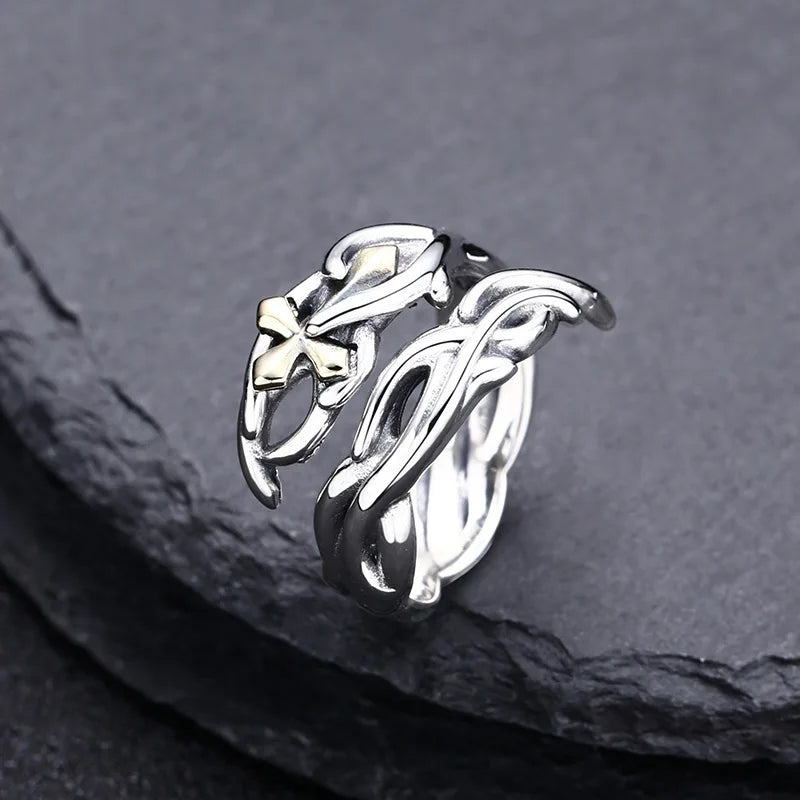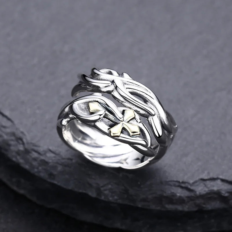 Wholesale 925 sterling silver cross ring for men and women live ring vine thai silver retro distressed personalized jewelry
