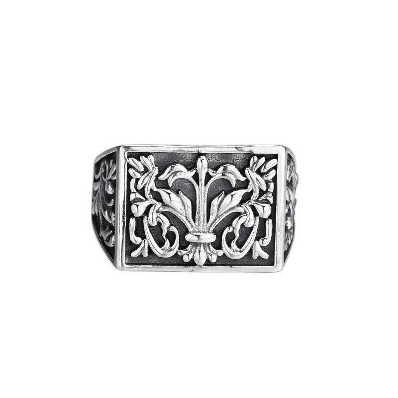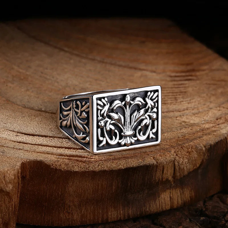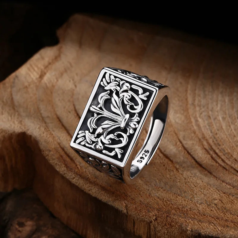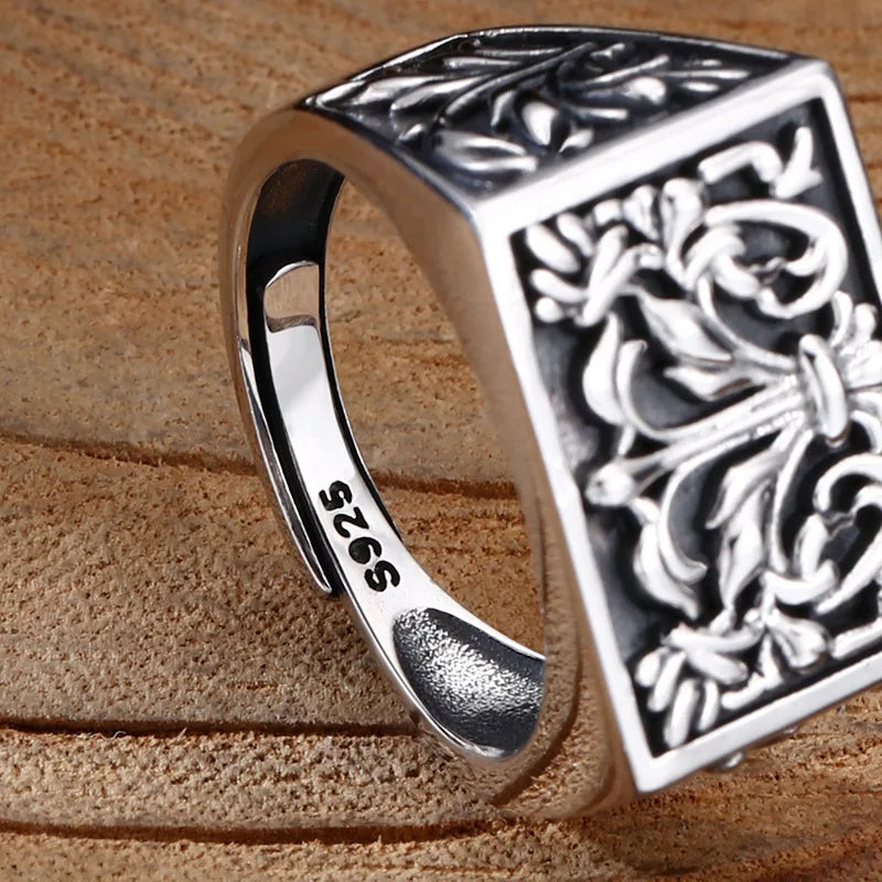 Wholesale 925 sterling silver ring Seiko Tang grass pattern ring ring opening Thai silver vintage trendy unique ornament