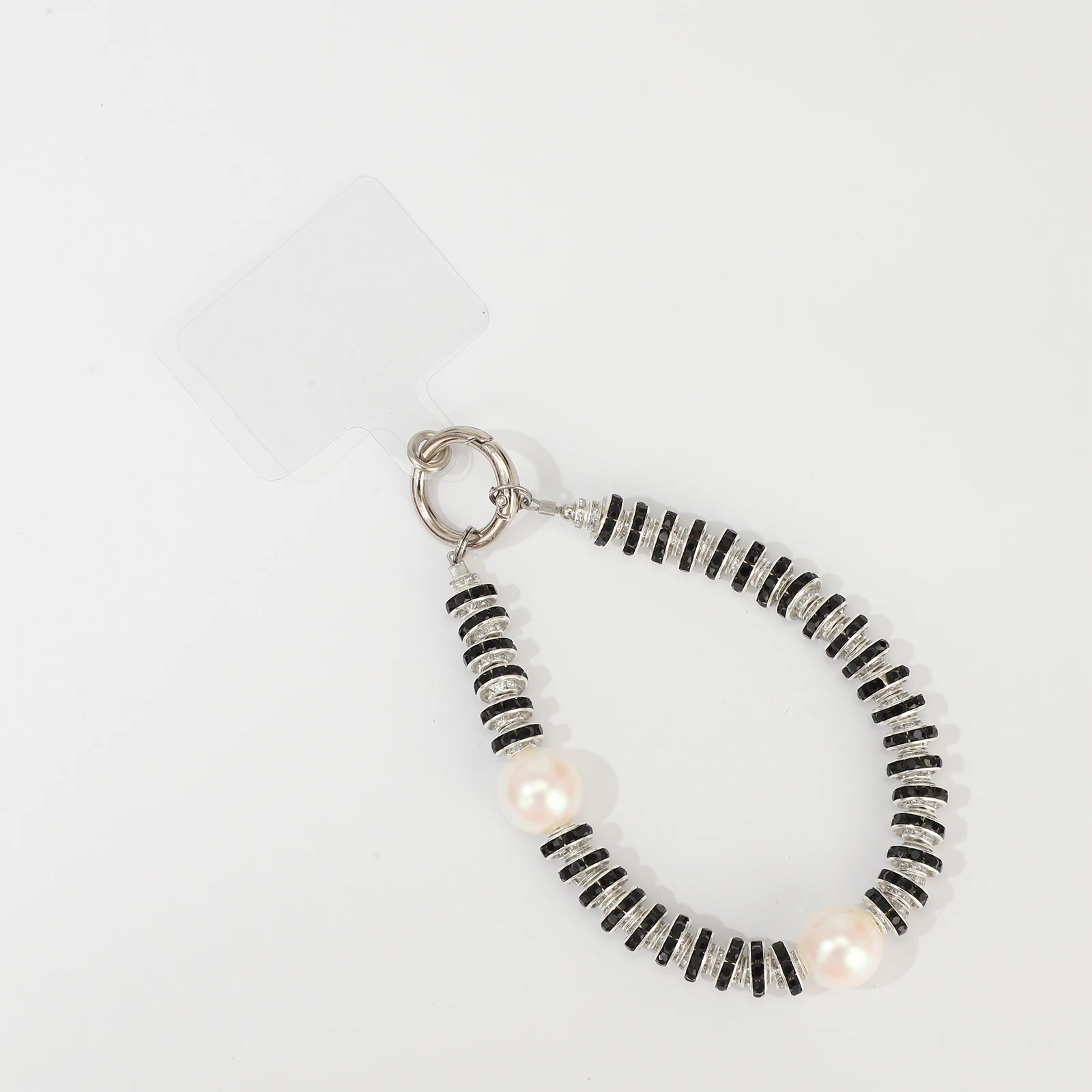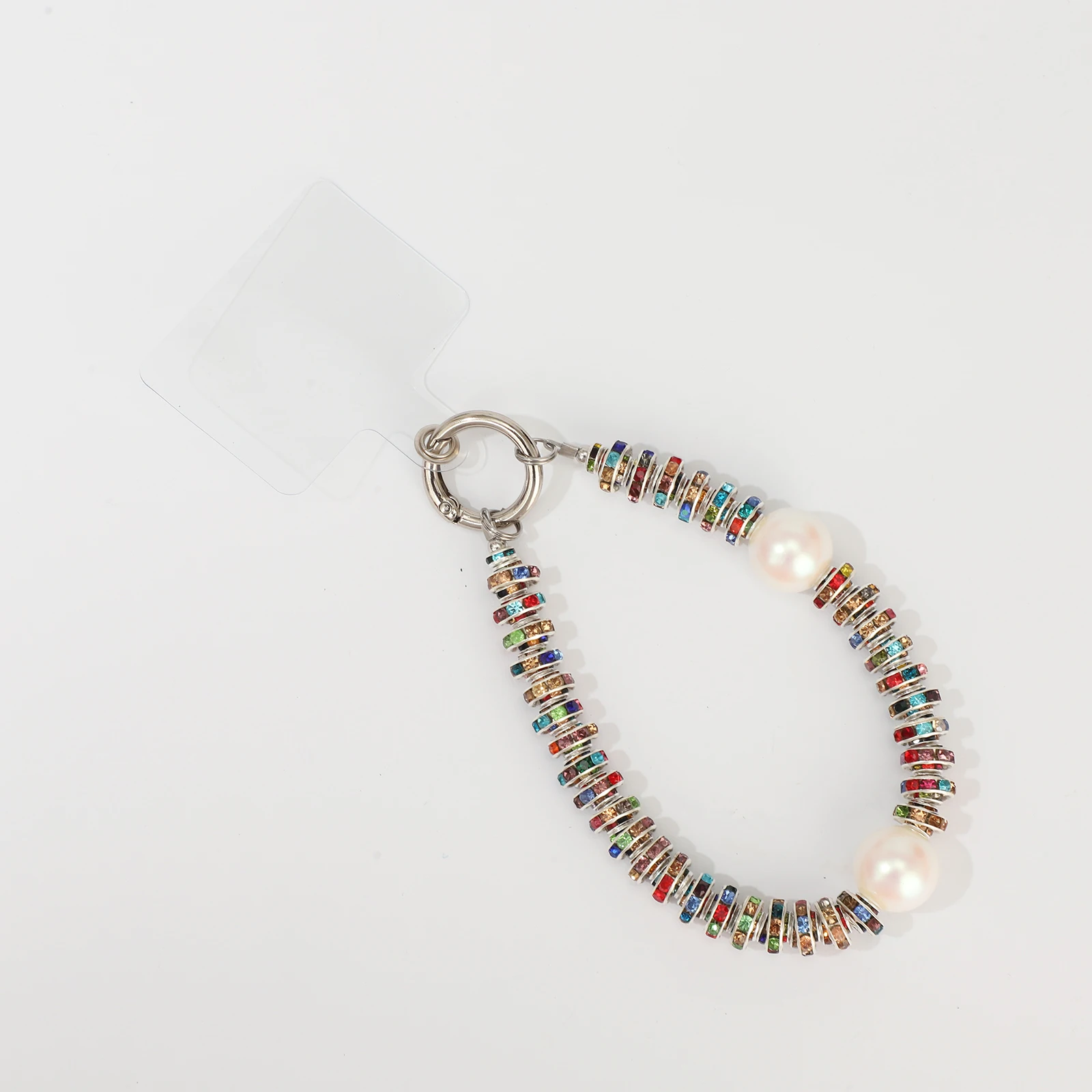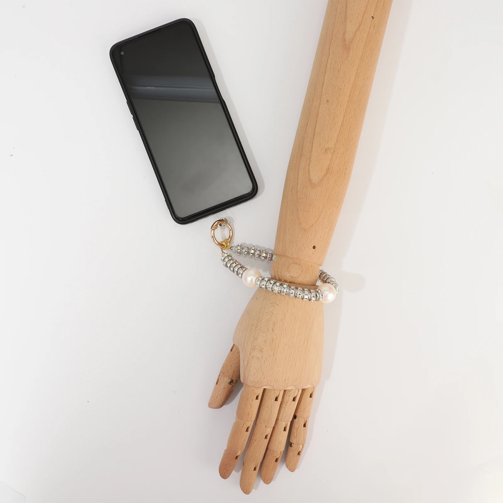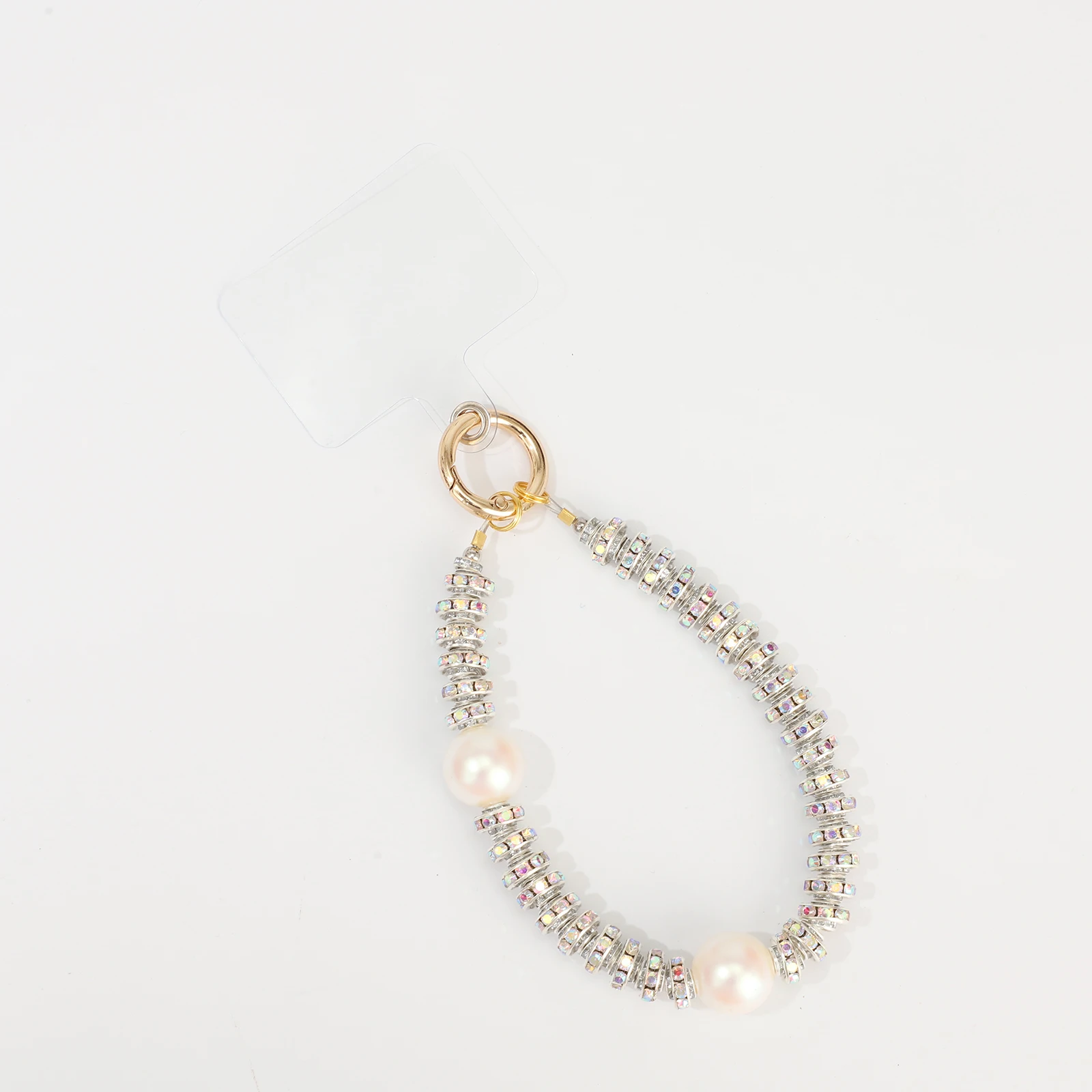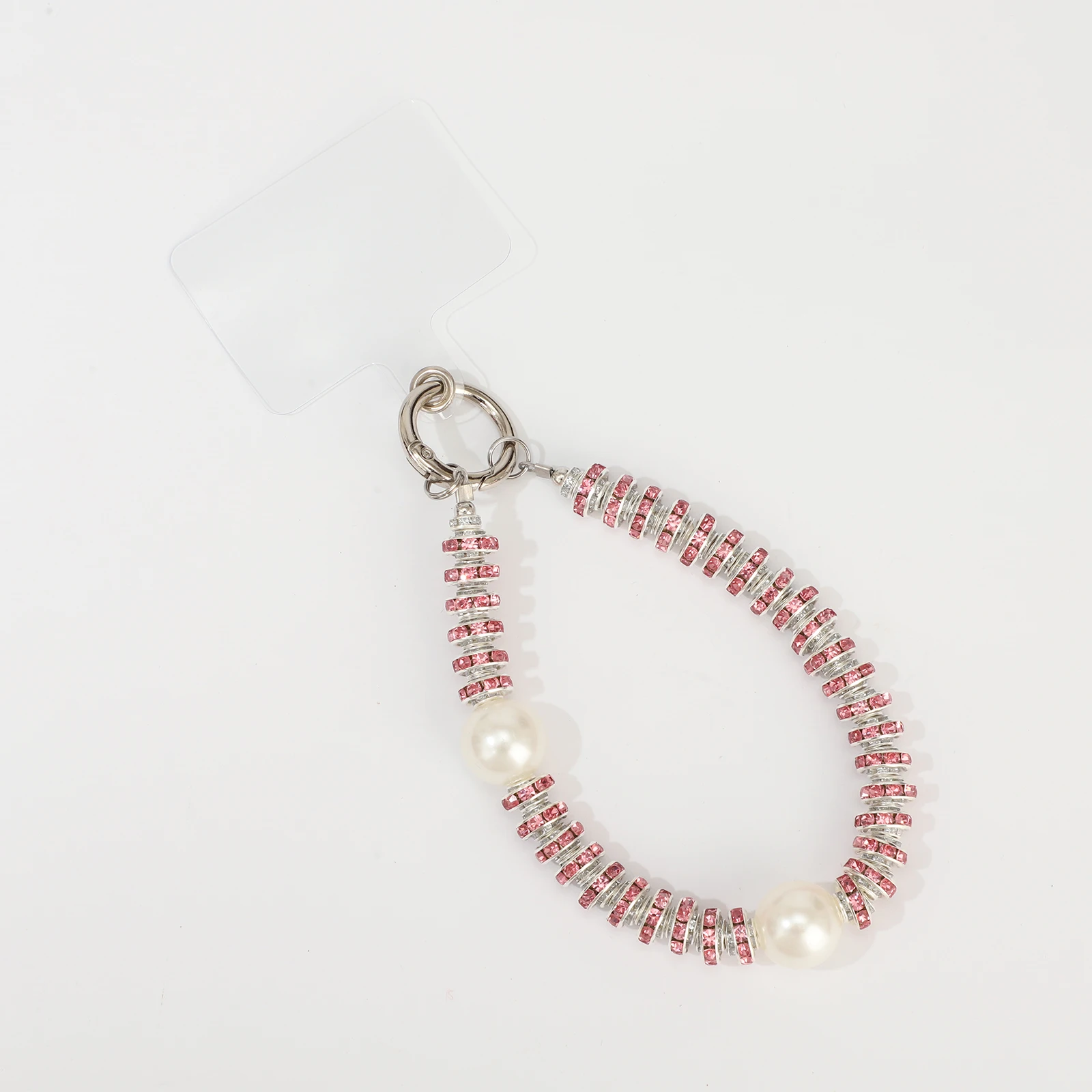 Women Cell Phone Sparkling Lanyard Pearls Beads Diamond Phone Straps with Tether Tab Phone Case Chain Hands-Free Wrist Strap