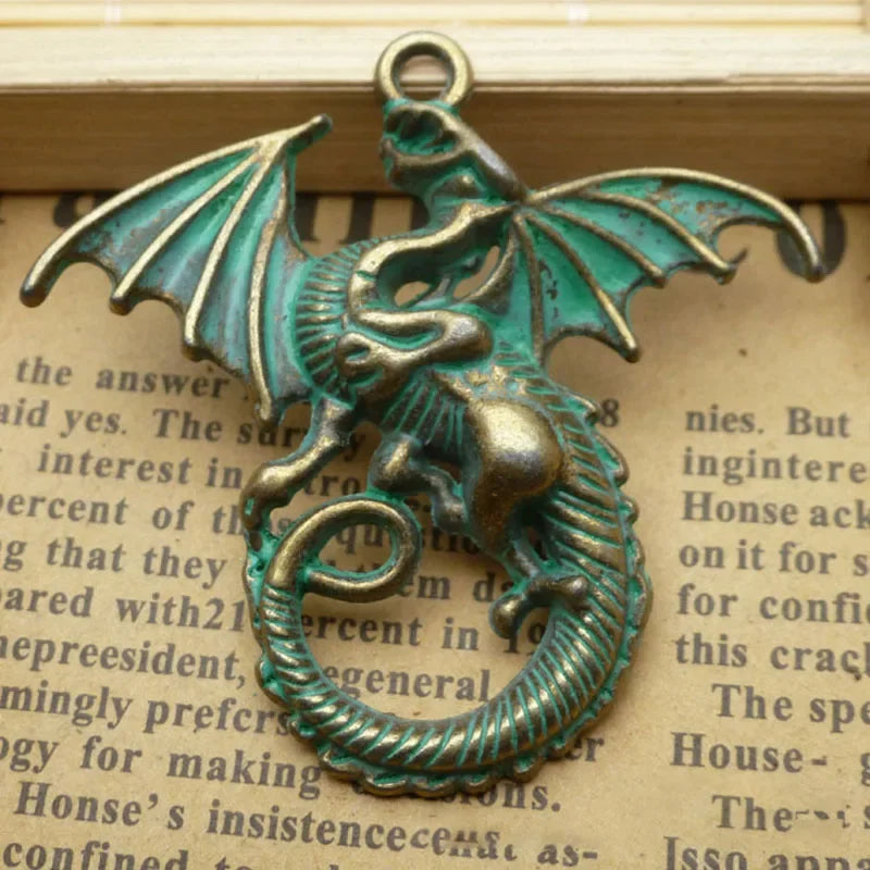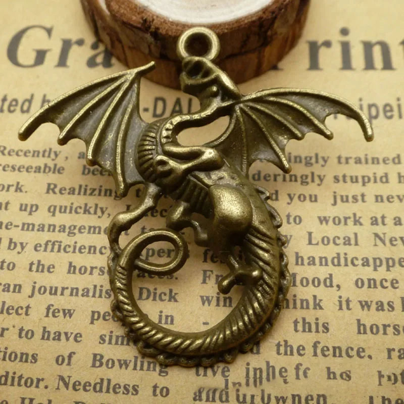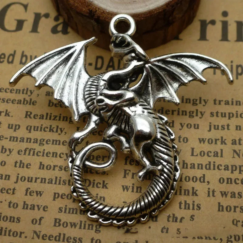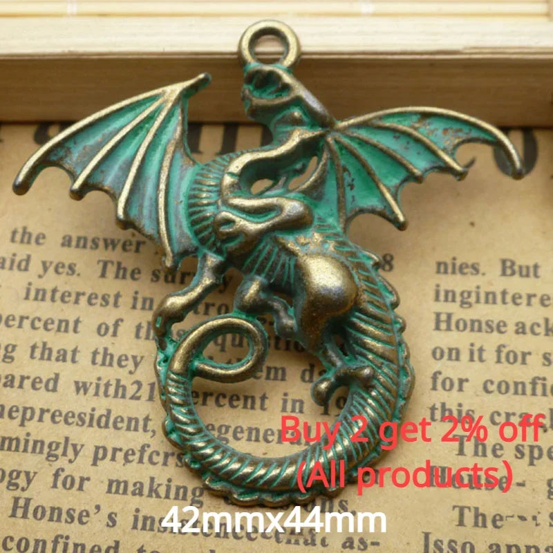 WZNB 5Pcs 43x46mm Ancient Sliver Dragon Charms Animals Pendant for Jewelry Findings Making Handmade Necklace Diy Accessories